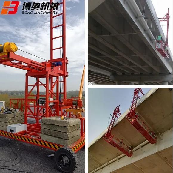 橋(qiáo)梁排水管(guǎn)道安裝可(ke)以用橋梁(liáng)專用吊籃(lan),工人可🍉以(yǐ)站在♋吊☎️籃(lán)裏面對橋(qiao)梁側面或(huò)底部進行(hang)排水管🏒的(de)安裝。橋梁(liang)吊籃由行(hang)走裝置和(he)吊籃組成(cheng)。
