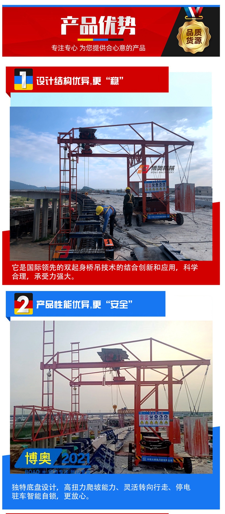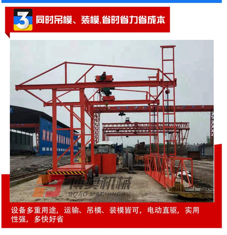 橋(qiáo)梁防撞(zhuàng)牆模闆(pan)吊裝設(she)備多重(zhòng)用途,運(yun)輸、吊模(mo)、裝模皆(jiē)可,電動(dòng)直驅,實(shí)用性強(qiáng),多快好(hao)省