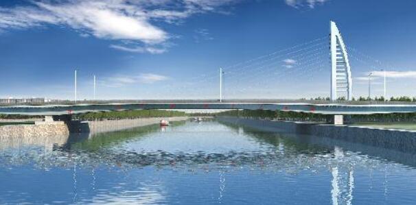 橋梁荷載等(děng)級爲城-A級,橋梁(liang)定位爲東台市(shi)首座全鋼結🤞構(gòu)‼️市🙇🏻政橋梁,也是(shì)鹽城地區建設(shè)的單孔跨徑最(zuì)大的鋼箱梁橋(qiao)。變🔞截面連續鋼(gāng)箱梁的設計不(bú)僅受力合理,其(qí)外觀造型也符(fú)合美觀需😍求,配(pei)合斜拉橋裝飾(shì),頗具美感。