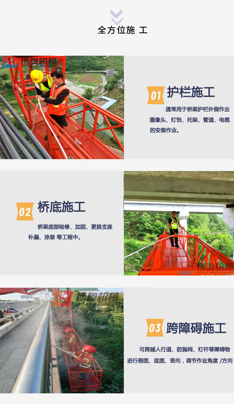 橋梁(liáng)落水管安裝施(shi)工設備提供一(yi)種橋梁橫向、縱(zòng)向排水管道安(an)裝施工的移動(dong)吊籃裝置,方便(bian)工人施工🔅,解決(jue)🧑🏽🤝🧑🏻橋梁防撞護欄(lán)外側及箱梁底(dǐ)部縱向排水管(guǎn)安裝不便、安全(quán)隐患大等技術(shu)問🐉題。